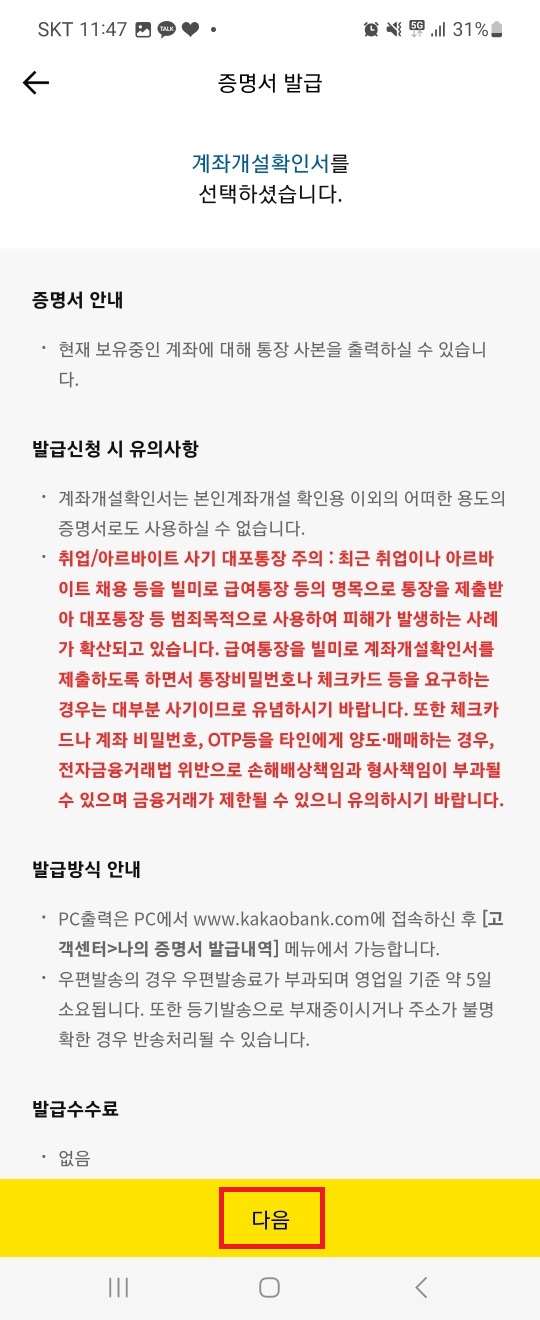 - 카카오뱅크 통장사본 발급