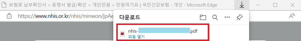 9. 다운로드 내역 중 다운로드 된 PDF 파일 클릭