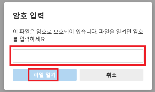 10. 암호란에 자신의 생년월일 6자리 입력 후 '파일 열기' 클릭